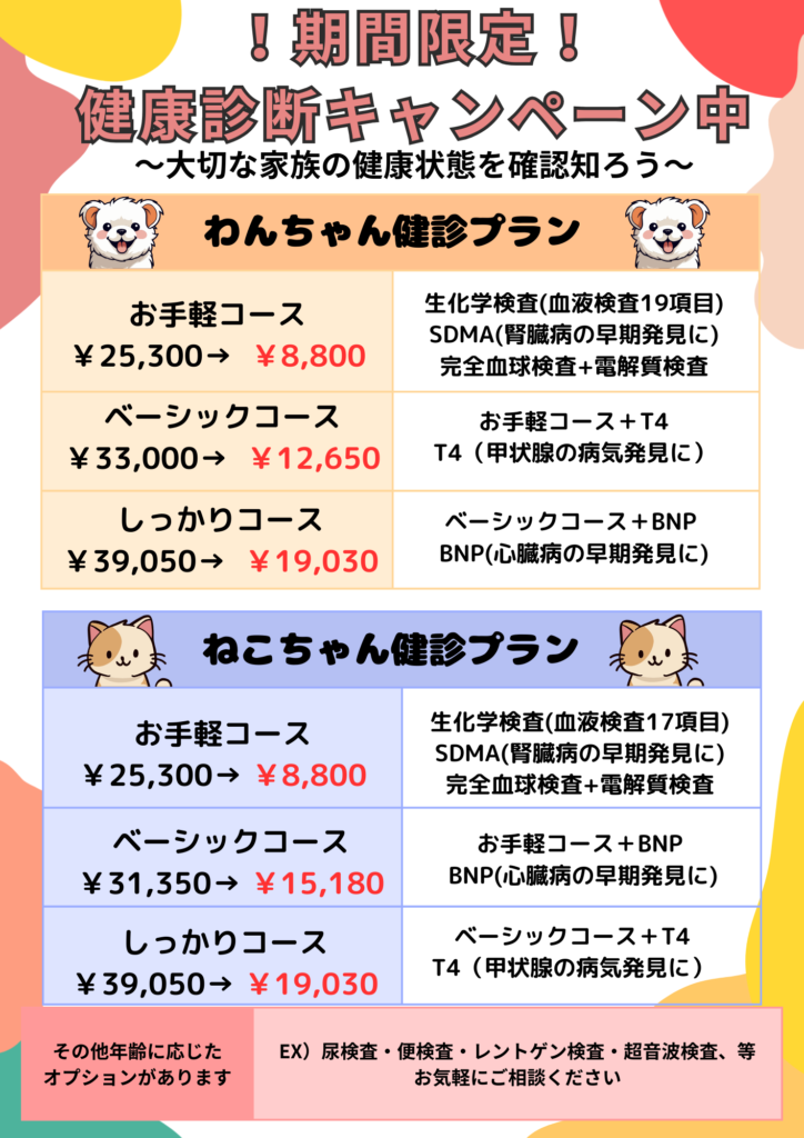 当院では3月1日~5月31日まで春の健康診断キャンペーンを行っております。