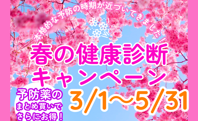当院では3月1日~5月31日まで春の健康診断キャンペーンを行っております。